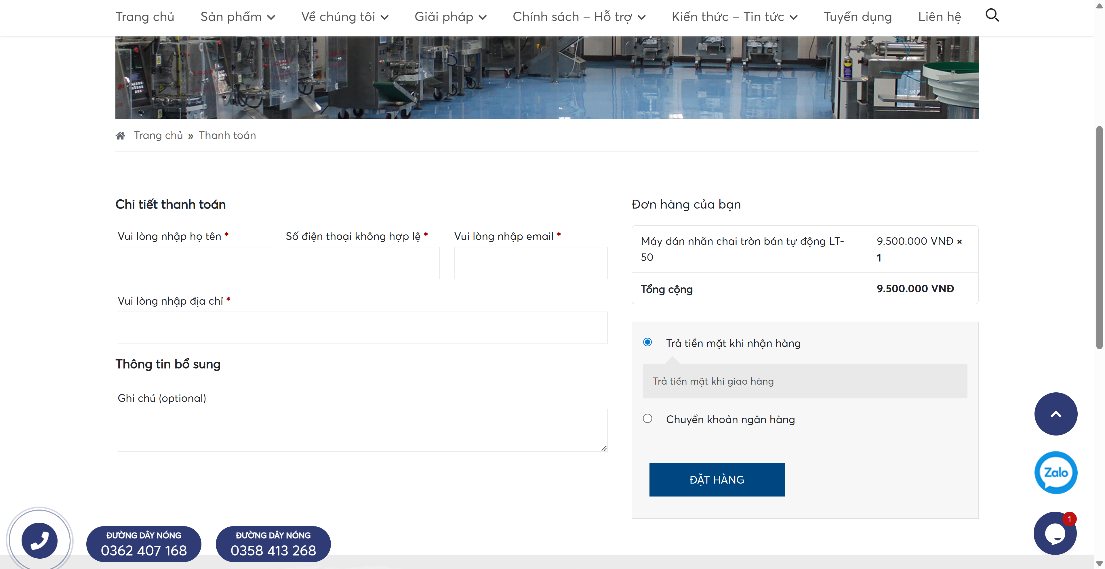 Cách 2: Đặt mua hàng online trên website congnghemayhungcuong.com