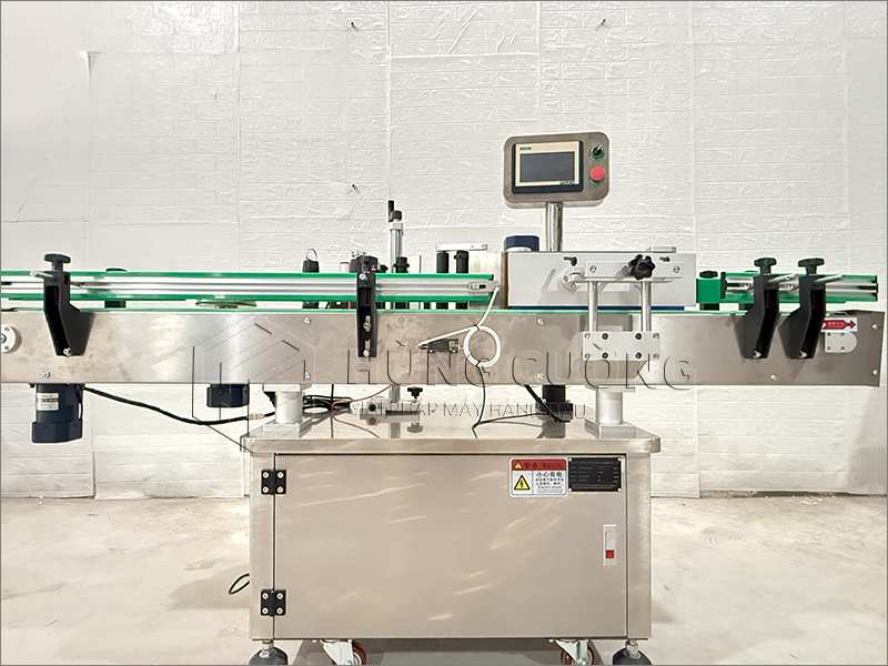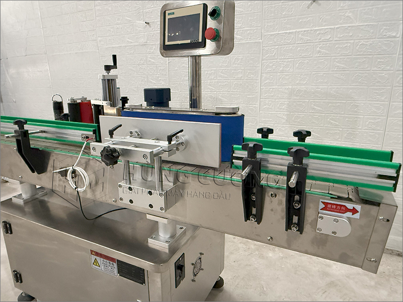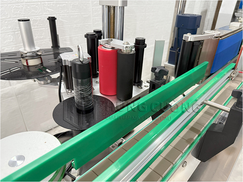 Máy dán nhãn chai tròn loại belt miết nhãn 420