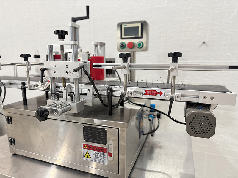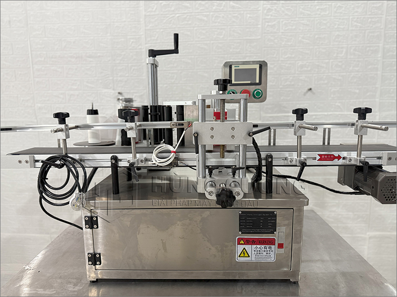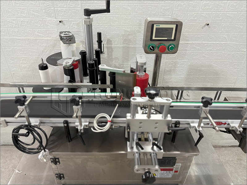 Máy dán nhãn chai tròn loại rulo miết nhãn mini